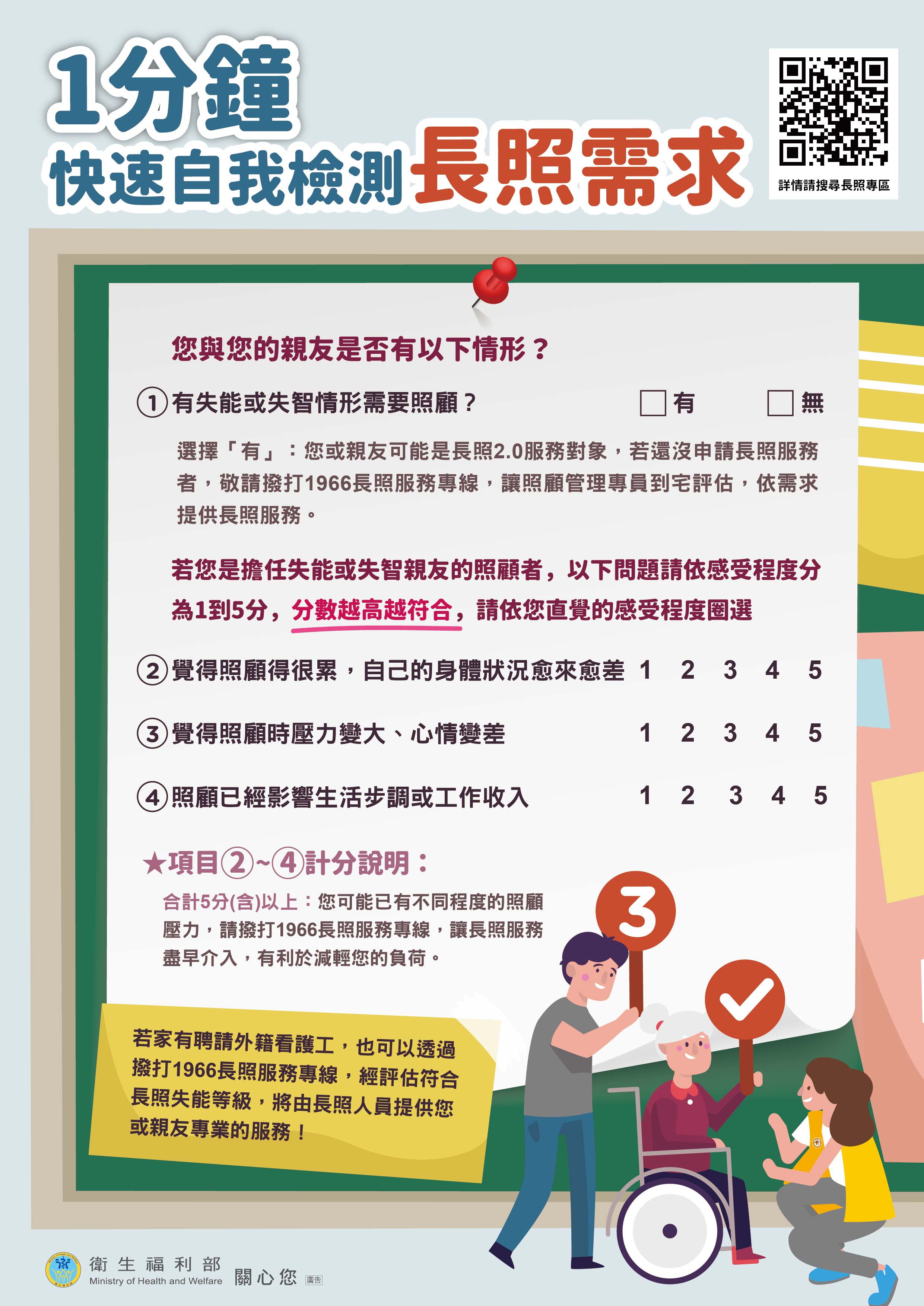 1966長照服務專線自我檢測需求海報